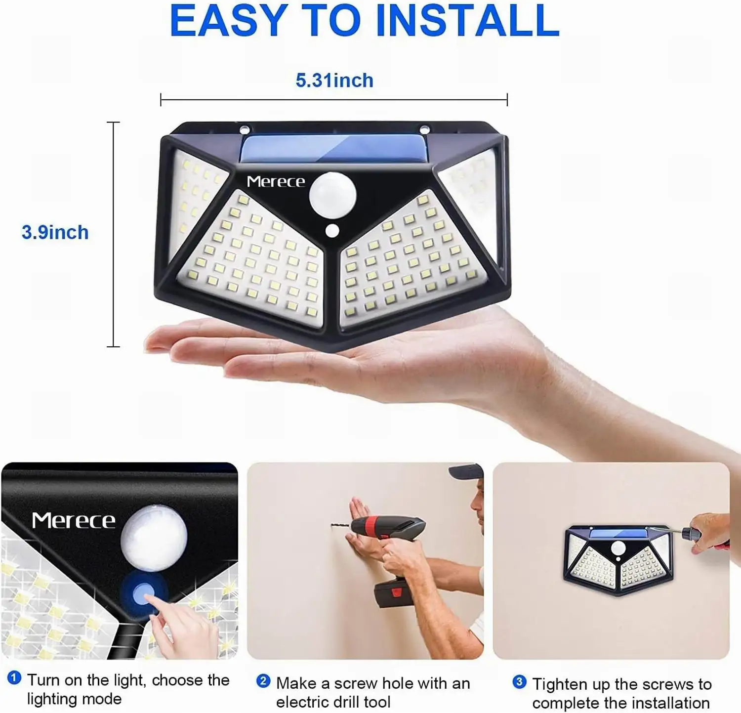 • 100 LED Solar Wall Lamp :This outdoor solar wall lamp features 100 LEDs, providing bright and clear lighting for your outdoor spaces.
