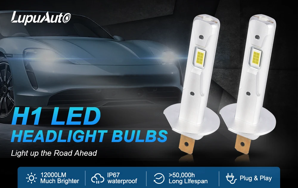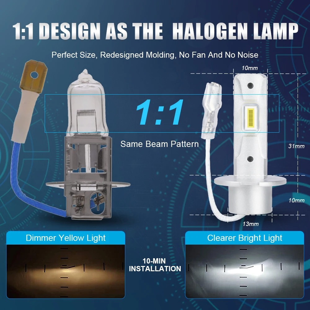 2Pcs 12000LM H1 LED Headlight Bulb H1 LED Canbus H3 LED Fog Light Fanless Wireless Mini Size Auto Lamp 12V 6000K White