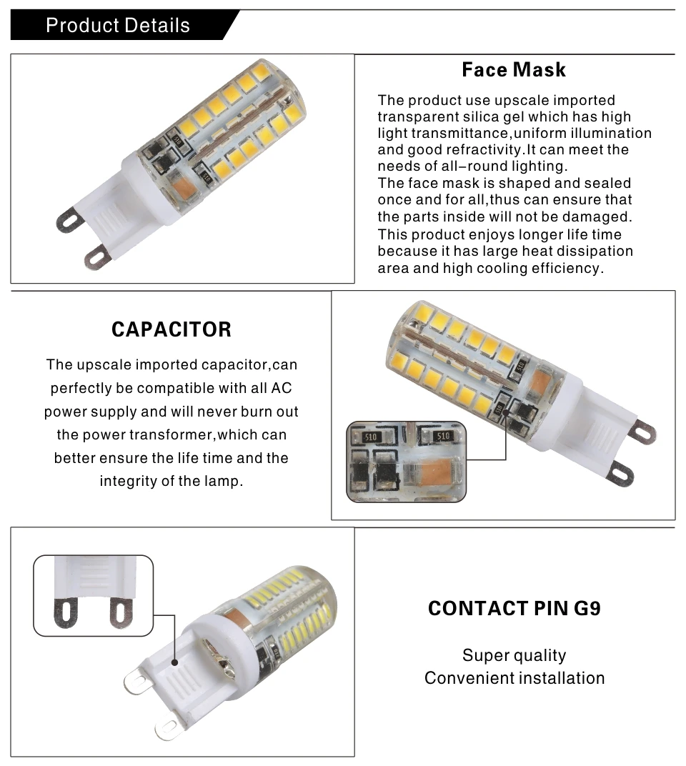 6pcs/lot G9 220V LED Lamp Corn Bulb 7W 9W 10W 12W AC 220V SMD 2835 3014 Lampada LED light 360 degrees Beam Angle spotlight lamps bulb