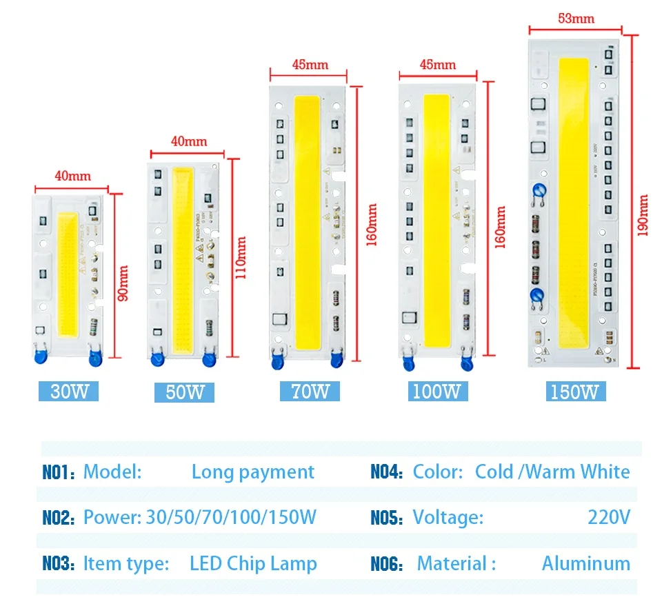 led long chip 150W / 110V / Warm White