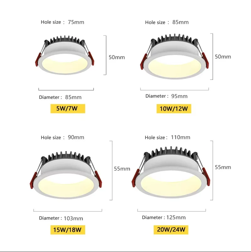 Cold white 6000K / Black / China Mainland|18W Dimmable